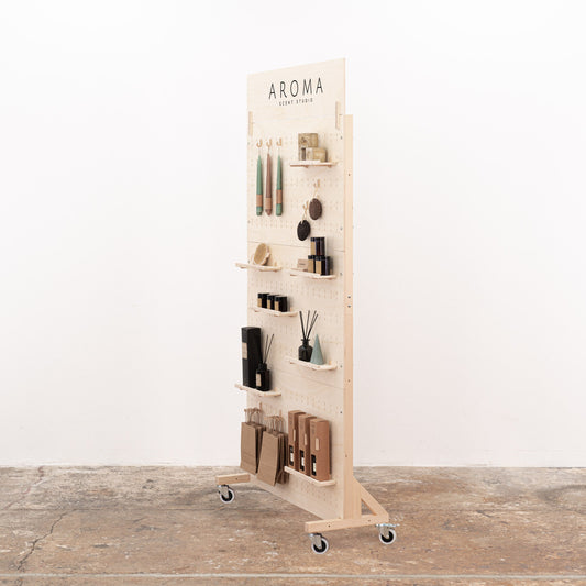 Our pegboard displays are crafted from high-quality plywood and durable wood, offering a premium aesthetic perfect for luxury retail environments, trade show booths, and pop-up shops. Unlike plastic pegboards or metal perforated panels, wooden pegboards deliver a natural look that aligns with eco-conscious brands and boutique displays.