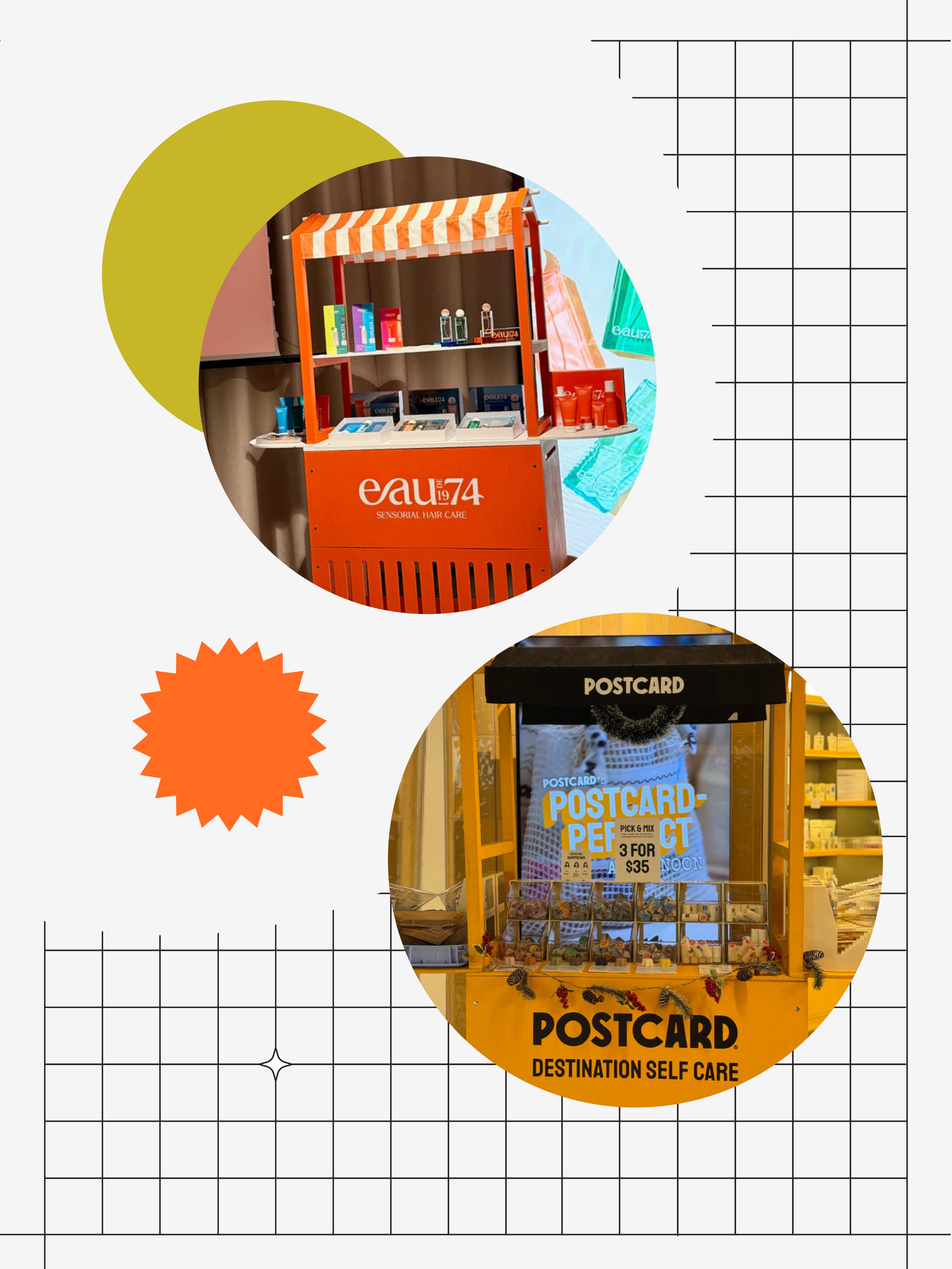 Benutzerdefinierter mobiler Einkaufswagen, der für Postcard als In-Store-Aktivierung erstellt wurde. Um eine gute Sichtbarkeit zu gewährleisten, ist der Wagen in kräftigem Gelb gehalten und so konzipiert, dass er leicht zusammenklappbar, mobil und schnell aufzubauen ist. Wird als Pop-up-Verkaufs- und Präsentationspunkt in einer Verkaufsfläche verwendet und kombiniert Produktpräsentation mit kompakter Lagerung und umfassendem Branding.