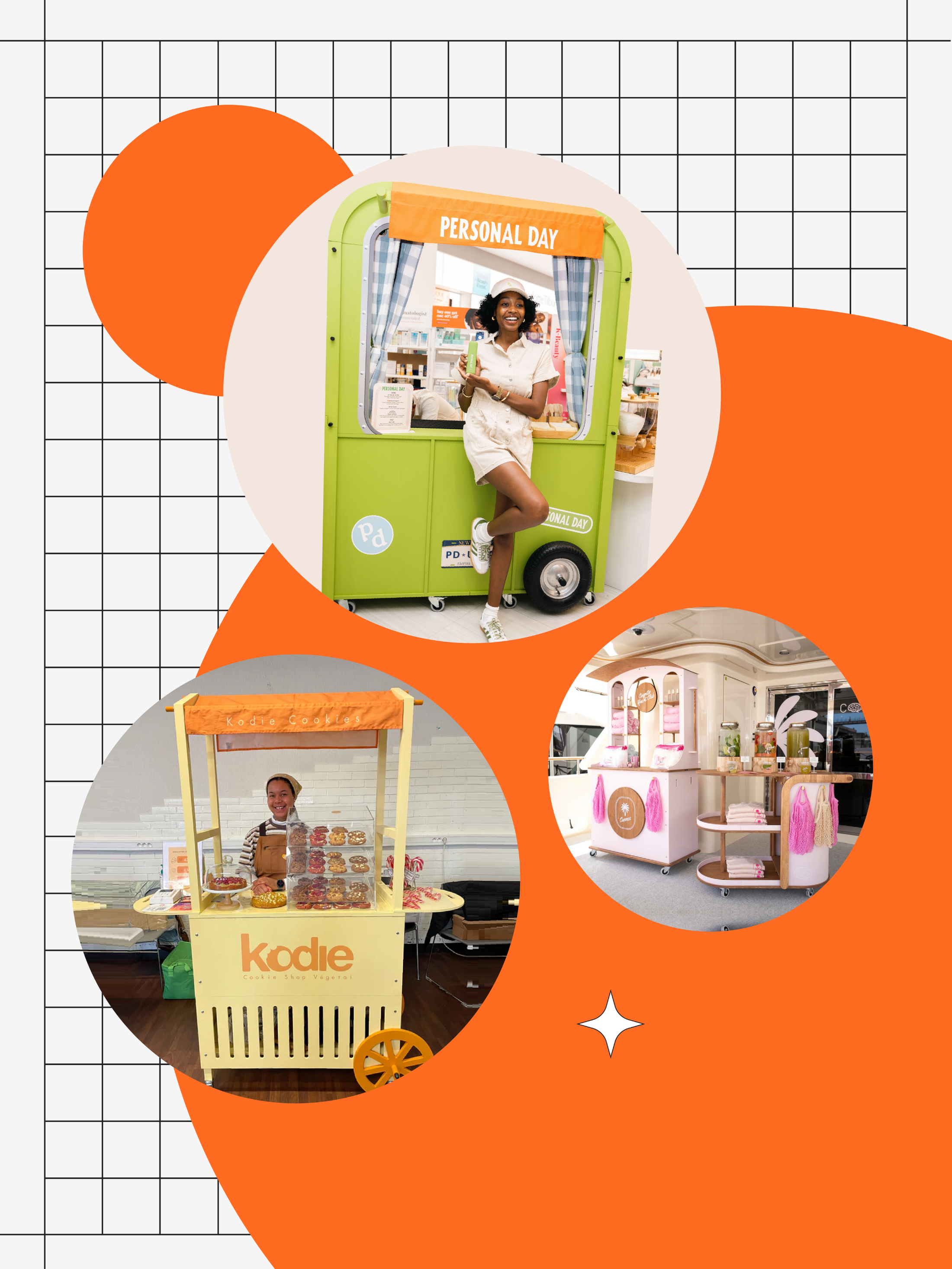 Maßgeschneiderter Event-Wagen für Kodle Cookies, eine vegane Keksmarke, die 2024 in Frankreich gegründet wurde. Der Einkaufswagen wird als mobiles Display für handgefertigte Kekse in kleinen Mengen bei Pop-ups und Veranstaltungen verwendet und unterstützt den regelmäßigen Verkauf vor Ort sowie den landesweiten Versand.