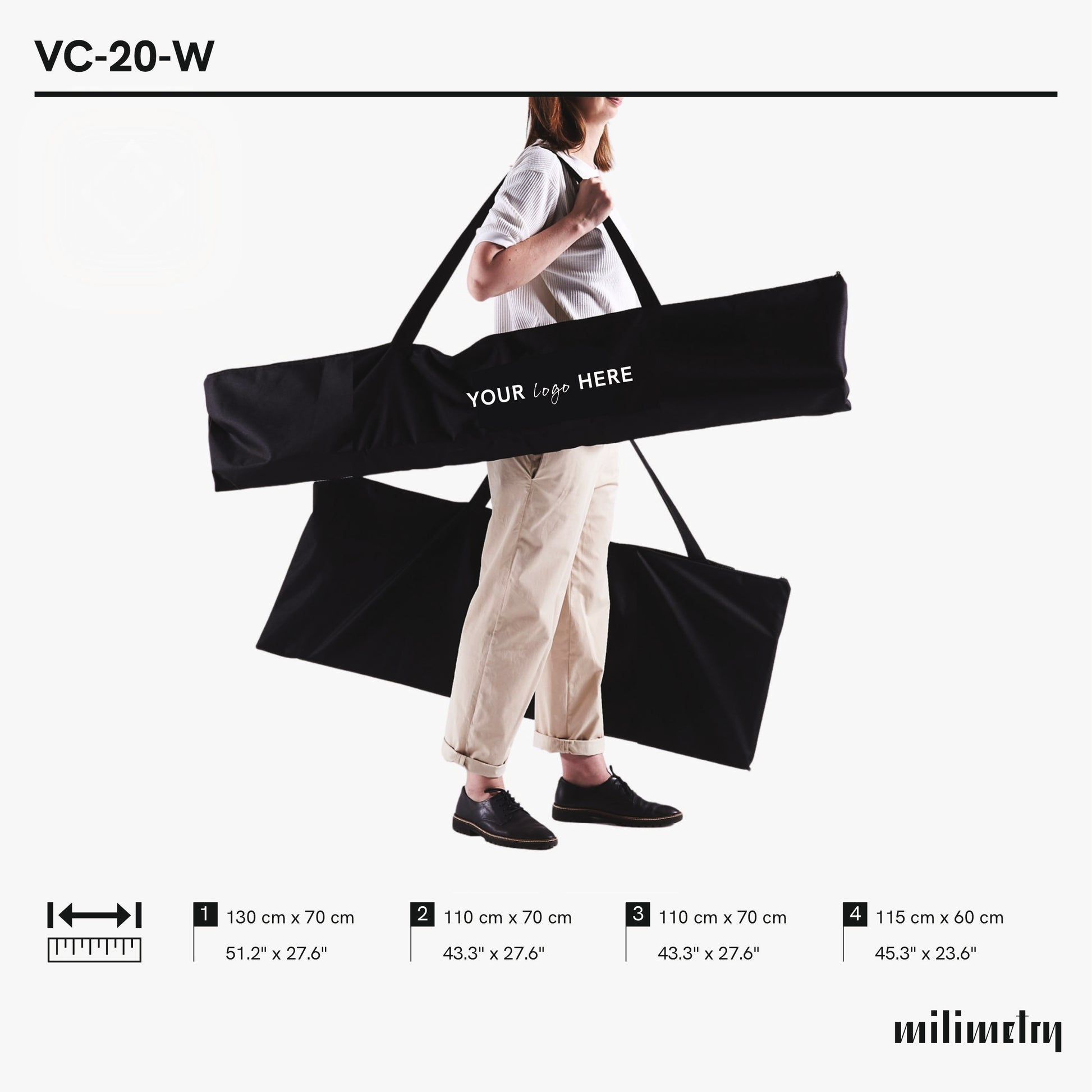 Tragekoffer für Displaystände bestehen aus dauerhaftem, schwarzem, wasserfestem Material. Sie können verwendet werden, um faltbare Anzeigeständer auf Ihrer Schulter zu tragen. Die Fälle eignen sich perfekt zum Transport von Displayständen mit dem Auto oder zum Speichern der Bestände zwischen den Ereignissen. Die Taschen halten alle Stücke organisiert und sauber.