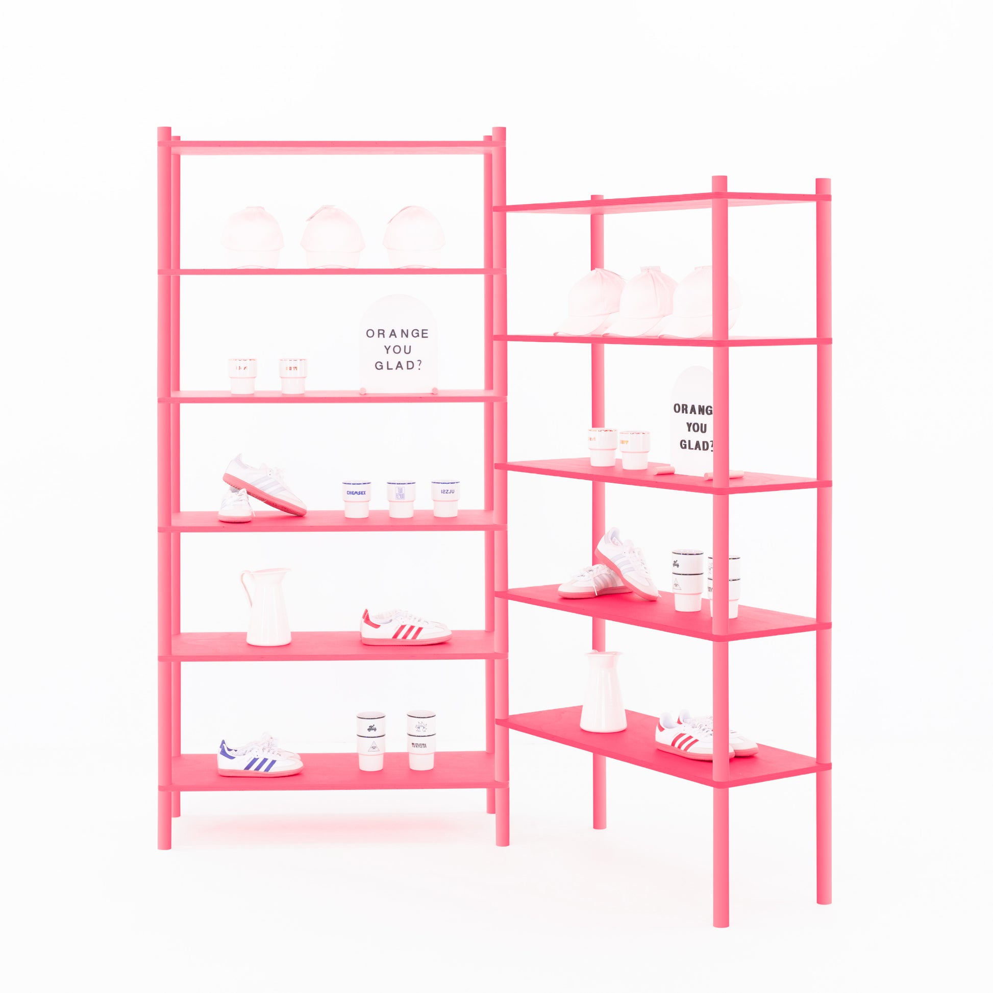 Hergestellt aus massivem Buchenholz und langlebigem Sperrholz. die Struktur kann sein in jedem RAL- oder NCS-Farbton lackiert – es Ihnen ermöglichen anpassen das Bücherregal perfekt Passen Sie sich der Identität Ihrer Marke an. Sein minimalistisches Design bietet eine klare und erhöhte Plattform für die Präsentation von Mode, Accessoires, Schönheitsprodukten, Büchern, Keramik und mehr. Werkzeuglose Montage Das Zusammenschrauben der Holzpfosten dauert nur wenige Minuten. Es ist flach verpackt, Transport machen und Lagerung einfach und effizient – ideal für Marken in Bewegung. Das Regal ist freistehend Und erfordert keine Wandinstallation.