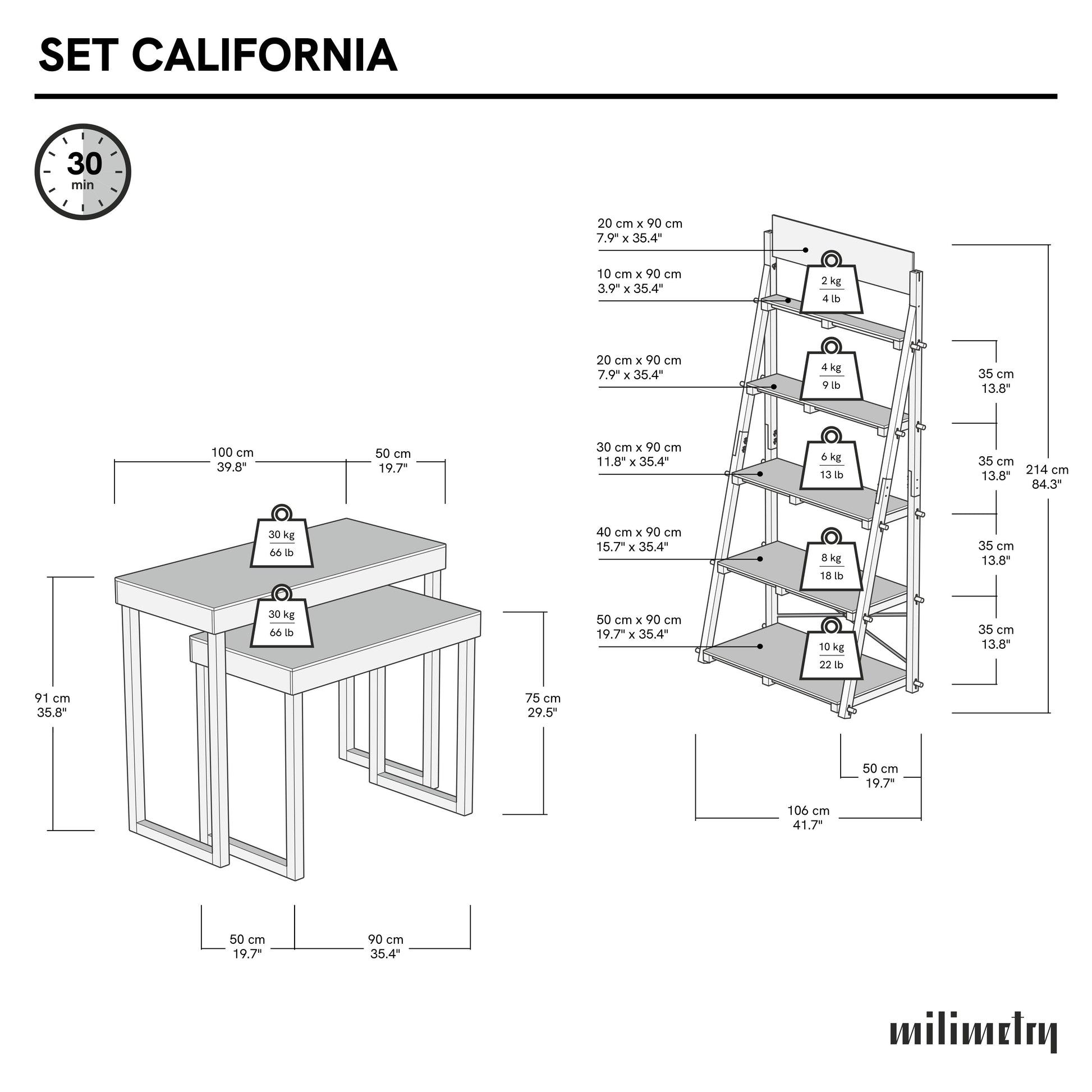 DerKalifornischer Standist einumfangreiches Möbelset, ideal fürMessen, Ausstellungsräume und EinzelhandelsflächenEs beinhaltet1, 2 oder 3 Ausstellungsregaleund eine Reihe vonzwei kaskadierende Präsentationstische, wodurch einestimmiger und professioneller Präsentationsbereichfür Ihre Produkte.