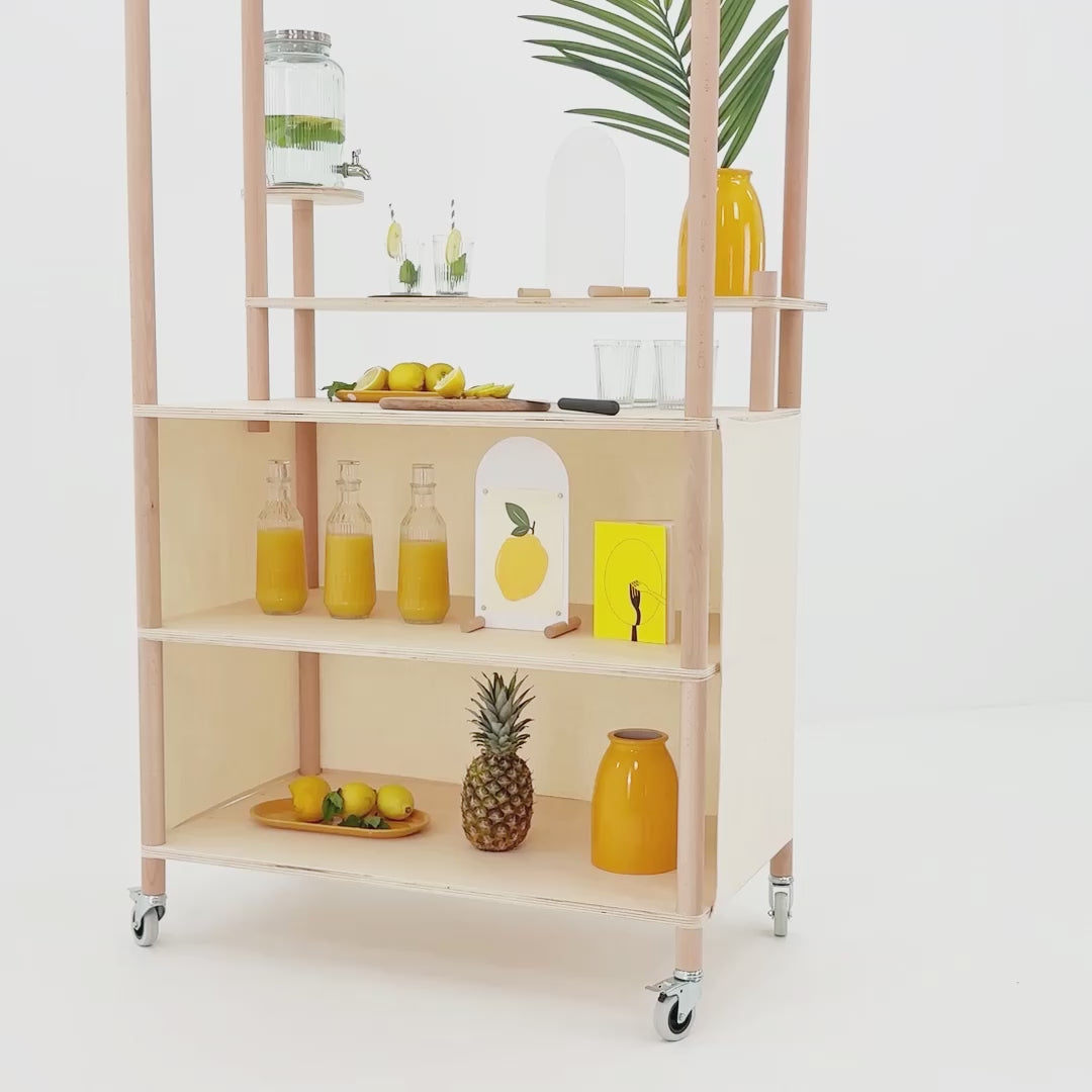 Bring freshness and functionality to your next event, market, or retail activation with the BAMBUK Mobile Display Cart. Designed for flexibility, mobility, and visual impact, this wooden cart features a minimalist frame, smooth rolling caster wheels, upper shelving functions as a canopy-style element.