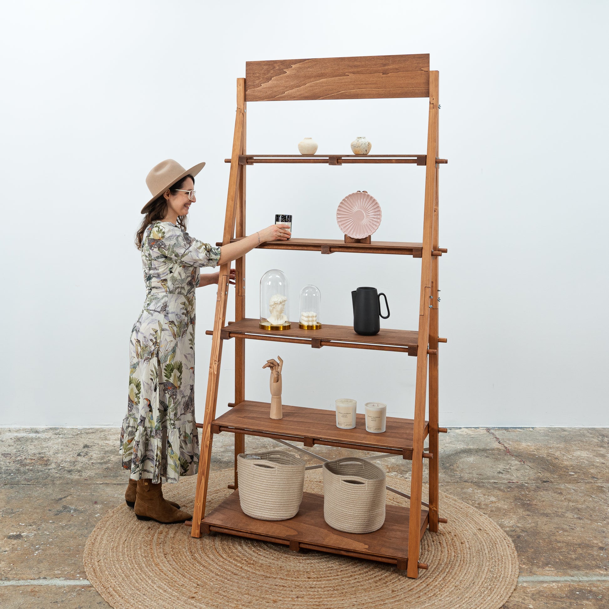 Étagère pliable couleur café– une fusion parfaite defonctionnalité, flexibilité et élégance. Ceétagère d'affichage modulaireest parfait pourproduits artisanaux, cosmétiques naturels, emballages durables et produits alimentaires artisanaux. Une optionpanneau en tissupeut être ajouté pour créer une toile de fond cohérente et neutre — un moyen simple de faire ressortir encore plus vos produits.