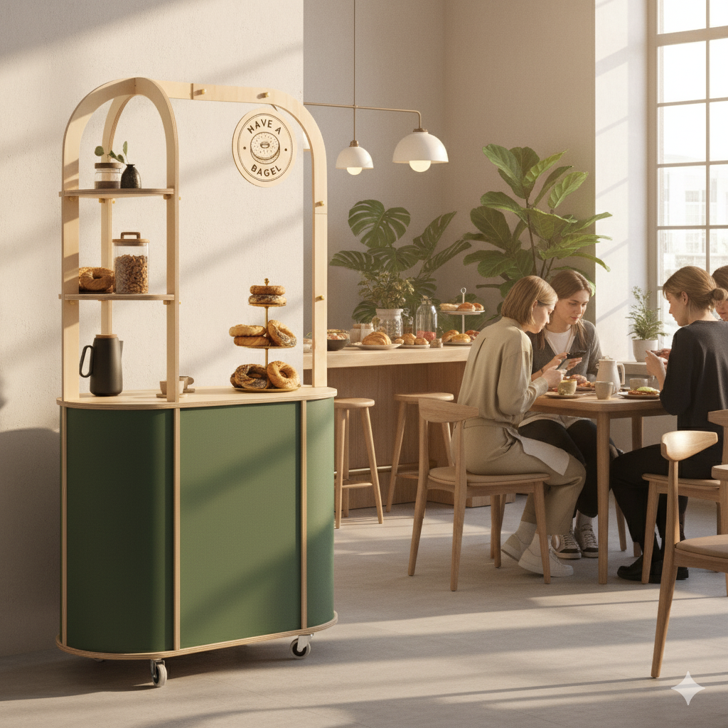 Ce chariot ovale compact est à la fois élégant et pratique, conçu pour les événements, les salons et les espaces de vente. Qu'il soit utilisé comme bar mobile, boutique de cadeaux ou stand promotionnel, sa conception modulaire s'adapte sans effort à différents besoins.