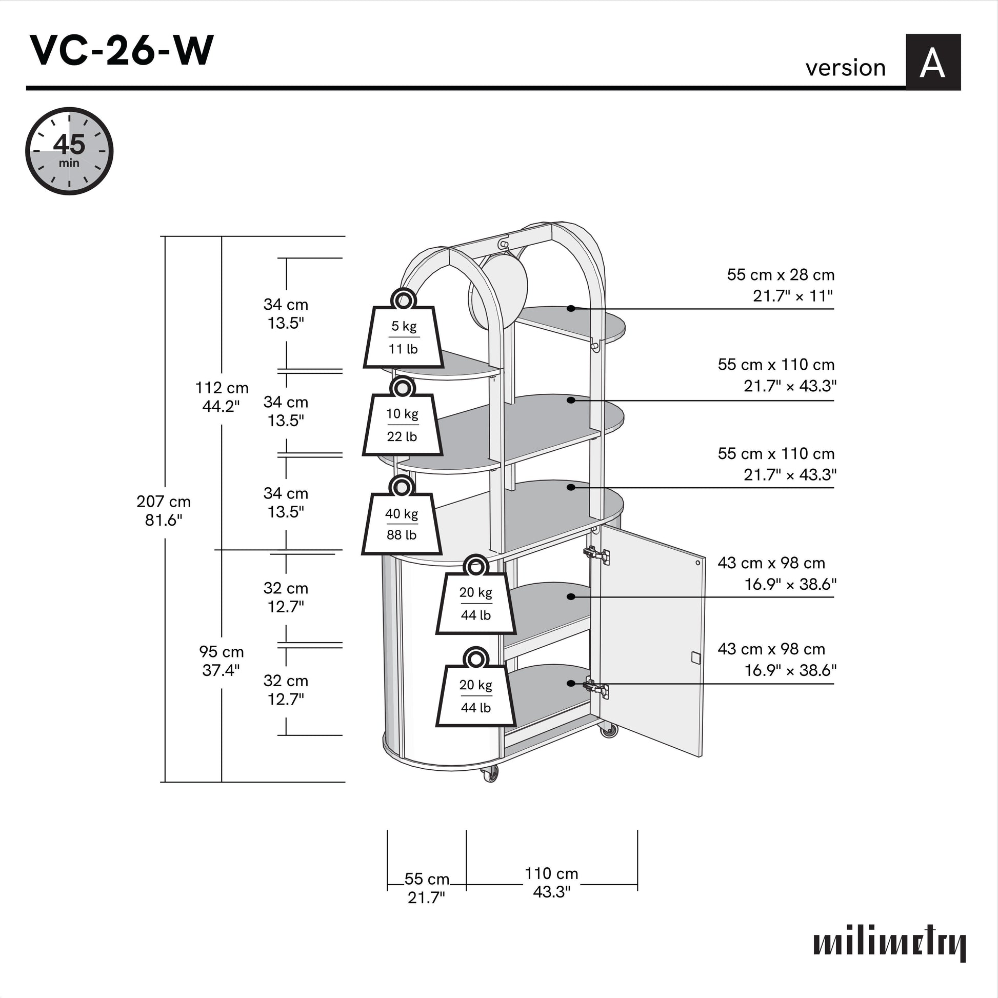La partie inférieure comprend portes d'armoires verrouillables, fournissant stockage sécurisé pour les stocks, la verrerie, les emballages, les équipements technologiques ou les objets personnels – une fonctionnalité essentielle pour équipes mobiles opérant à travers environnements événementiels à fort trafic. Le chariot est entièrement personnalisable dans couleurs de la marque et dispose d'un espace pour une façade plaque logotypée, en s'assurant qu'il s'intègre dans n'importe quel concept d'affichage de style de vie ou expérience marketing multisensorielle. C'est aussi un structure en paquet plat sans outil, permettant configurations d'événements en déplacement et un rangement facile.