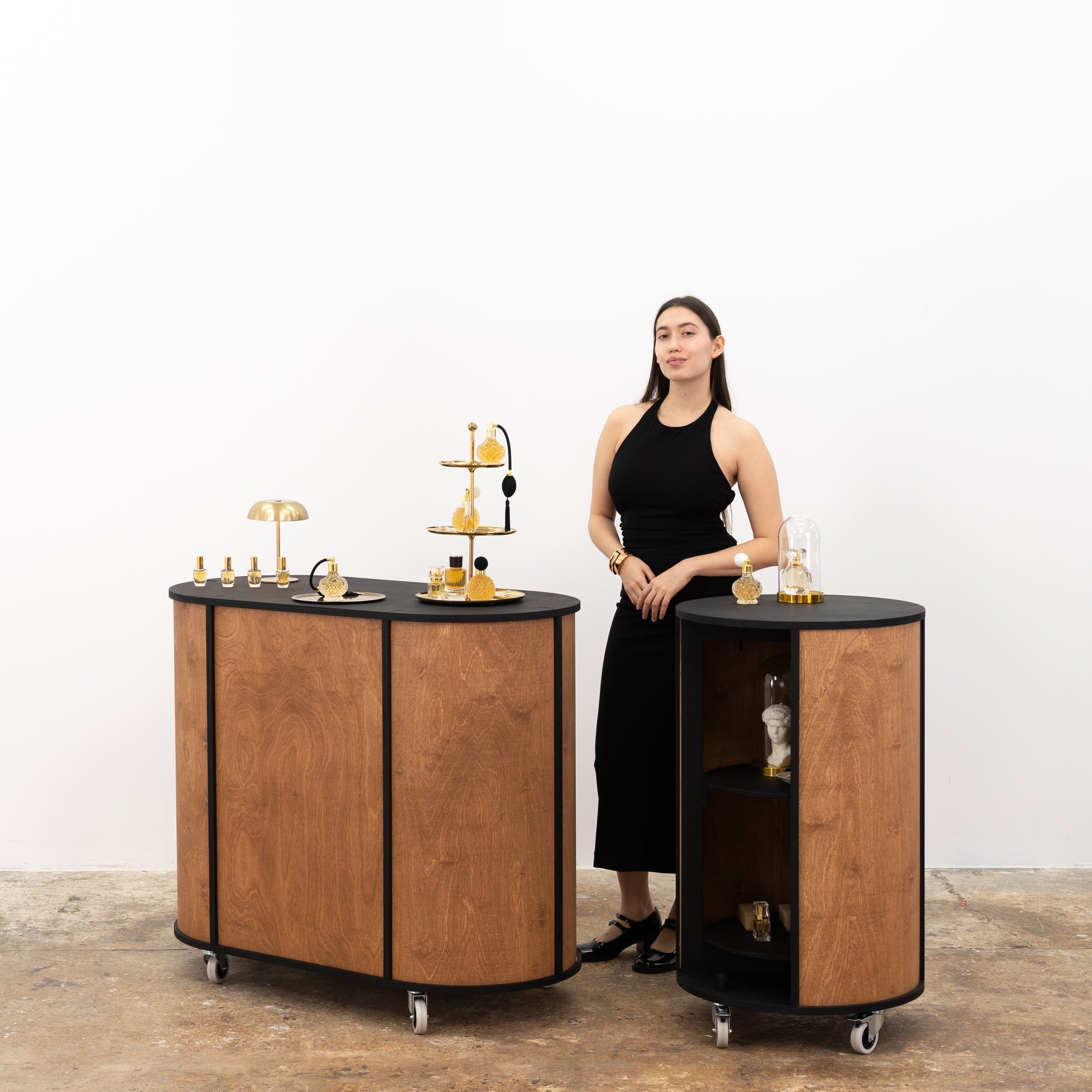 Le Comptoir ovale compact VC-23-W-ML est l'ultime station d'affichage multifonctionnelle, conçu pour petits événements, boutiques éphémères, expositions, et présentoirs de vente au détail. Son design élégant et sa mobilité le rendent parfait comme comptoir de vente, station-service, ou vitrine de produits. Idéal pour les entreprises à la recherche d'un compteur portatif, il propose polyvalence, efficacité de l'espace, et aspect pratique.