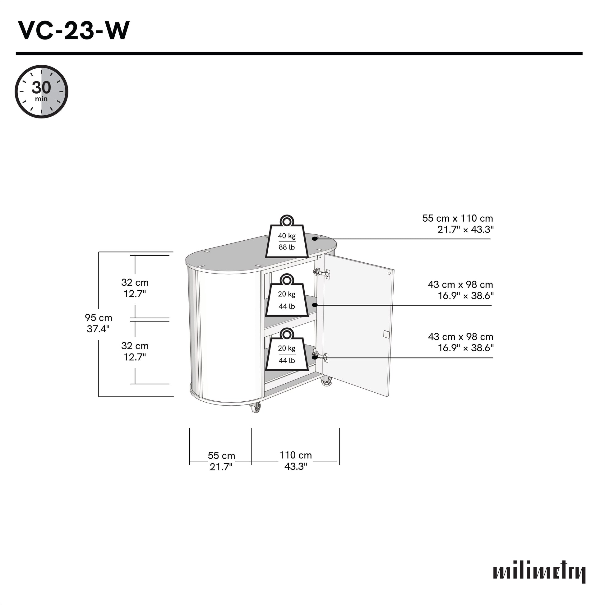 - width: 110 cm (43.3")