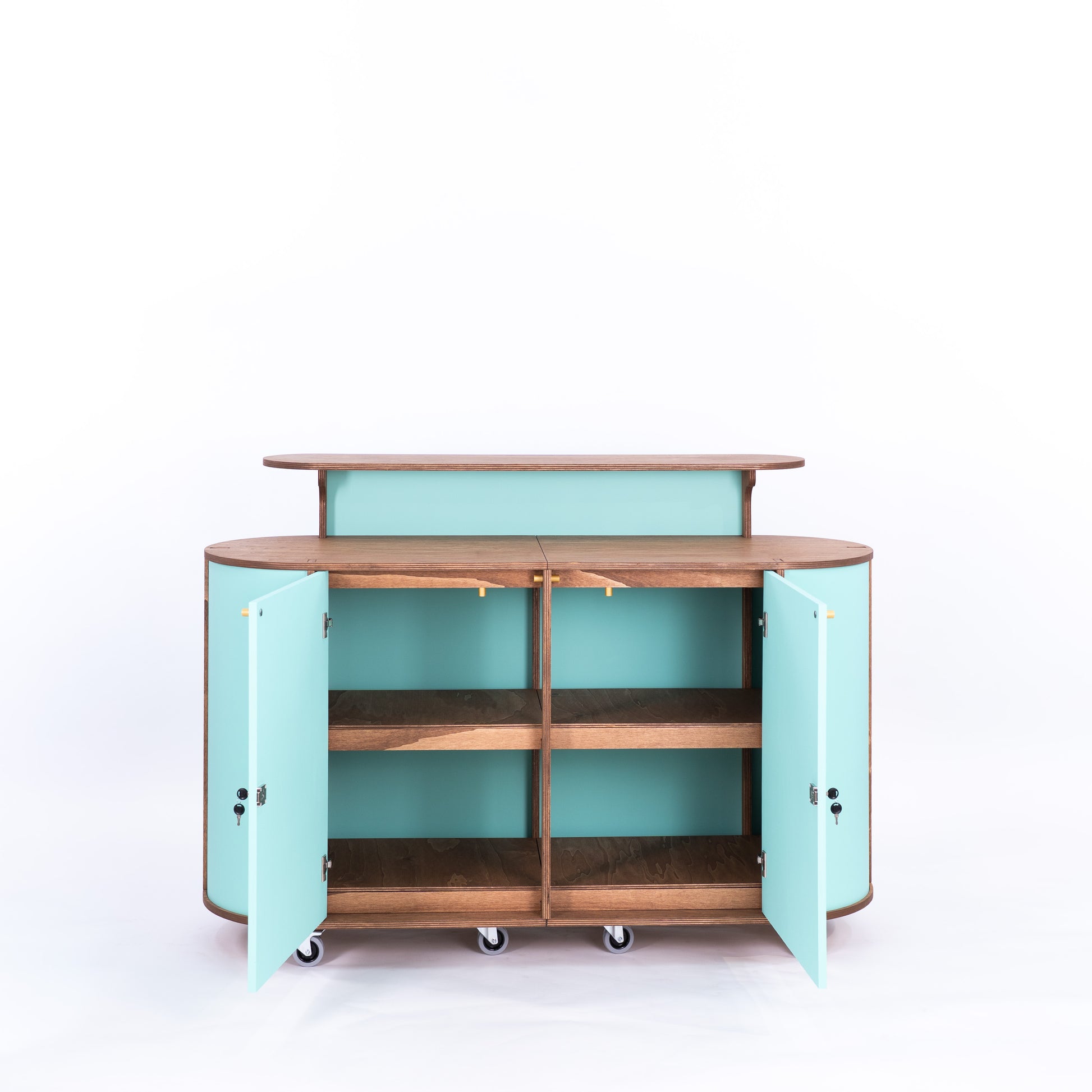 Le comptoir spacieux offre suffisamment d'espace pour présentation du produit, services, ou même écrans interactifs. Ci-dessous, compartiments de rangement, équipé de portes d'armoires verrouillables - gardez vos essentiels bien organisés et hors de vue, assurant un nettoyage propre, configuration sans encombrement lors de votre prochain événement ou espace de vente au détail.