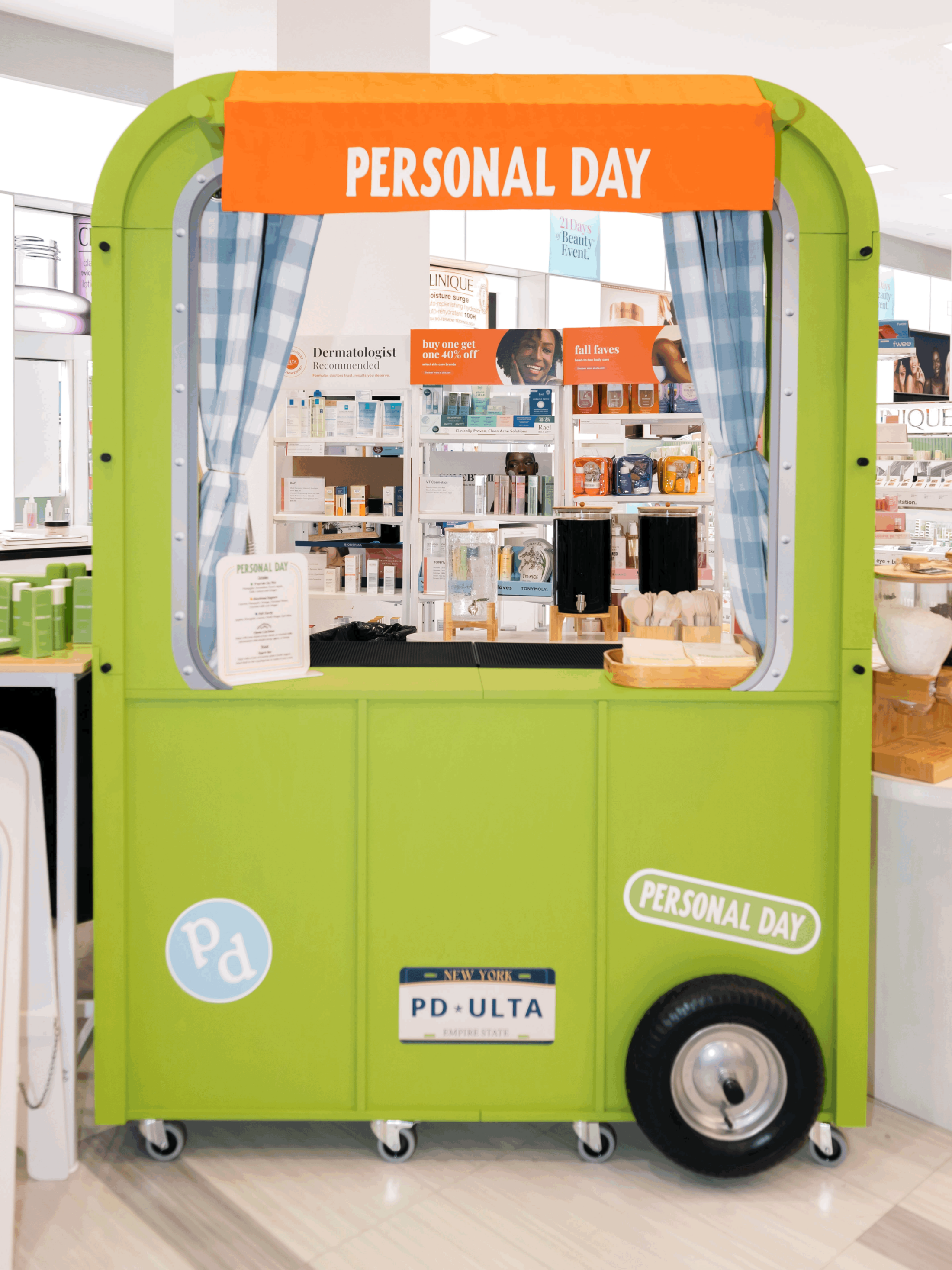 A custom camper-style cart designed for a beauty brand activation in a high-traffic retail environment. Created for Secret Sauce, the mobile setup was developed as an experiential marketing tool, combining strong visual impact with a functional, customer-facing format. The project supported live engagement, product discovery, and in-person brand interaction, while maintaining a premium, campaign-ready aesthetic.