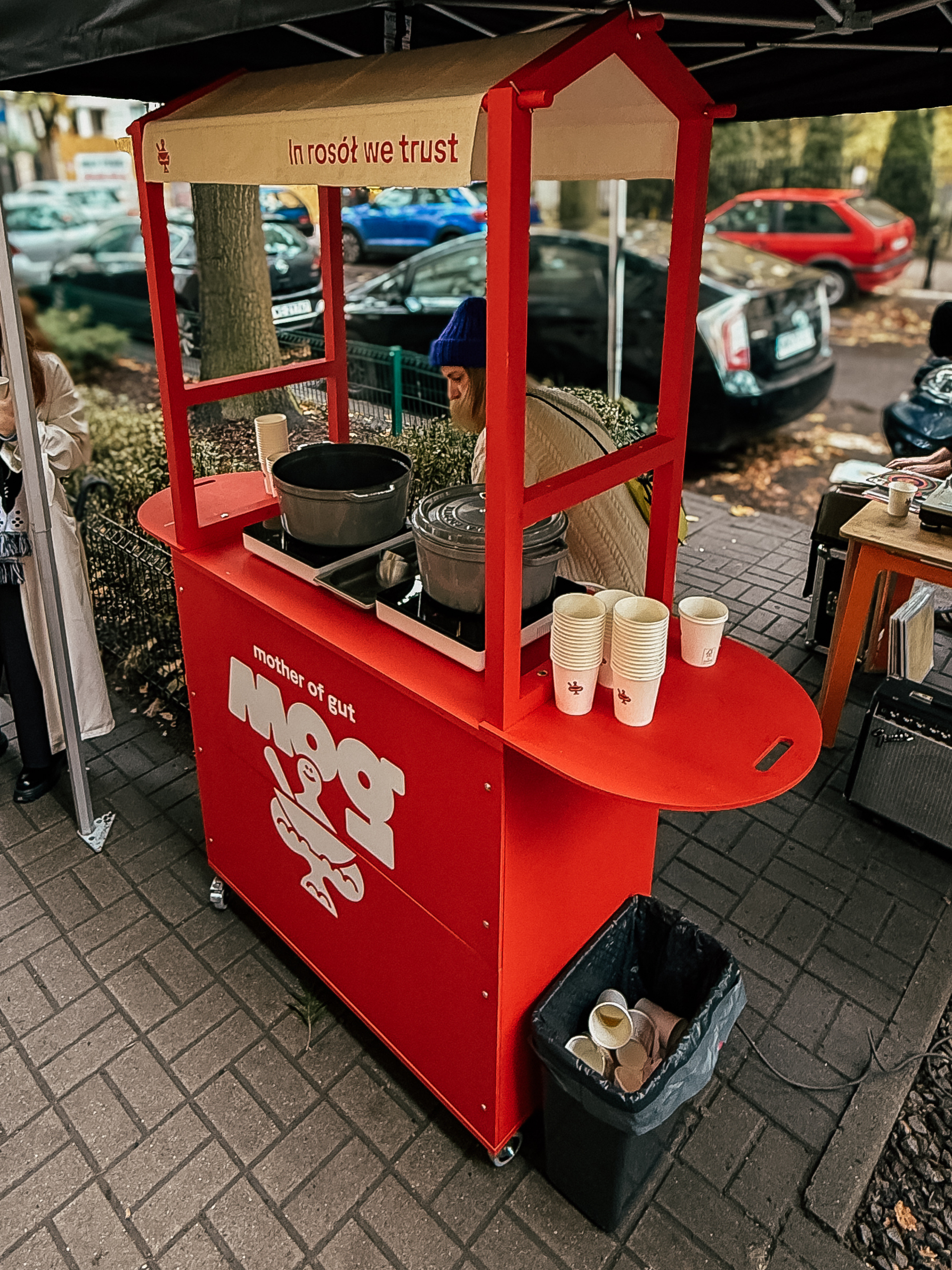 For the first anniversary of Mother of Gut, we created a red mobile event cart used during a two-part event in Warsaw.
