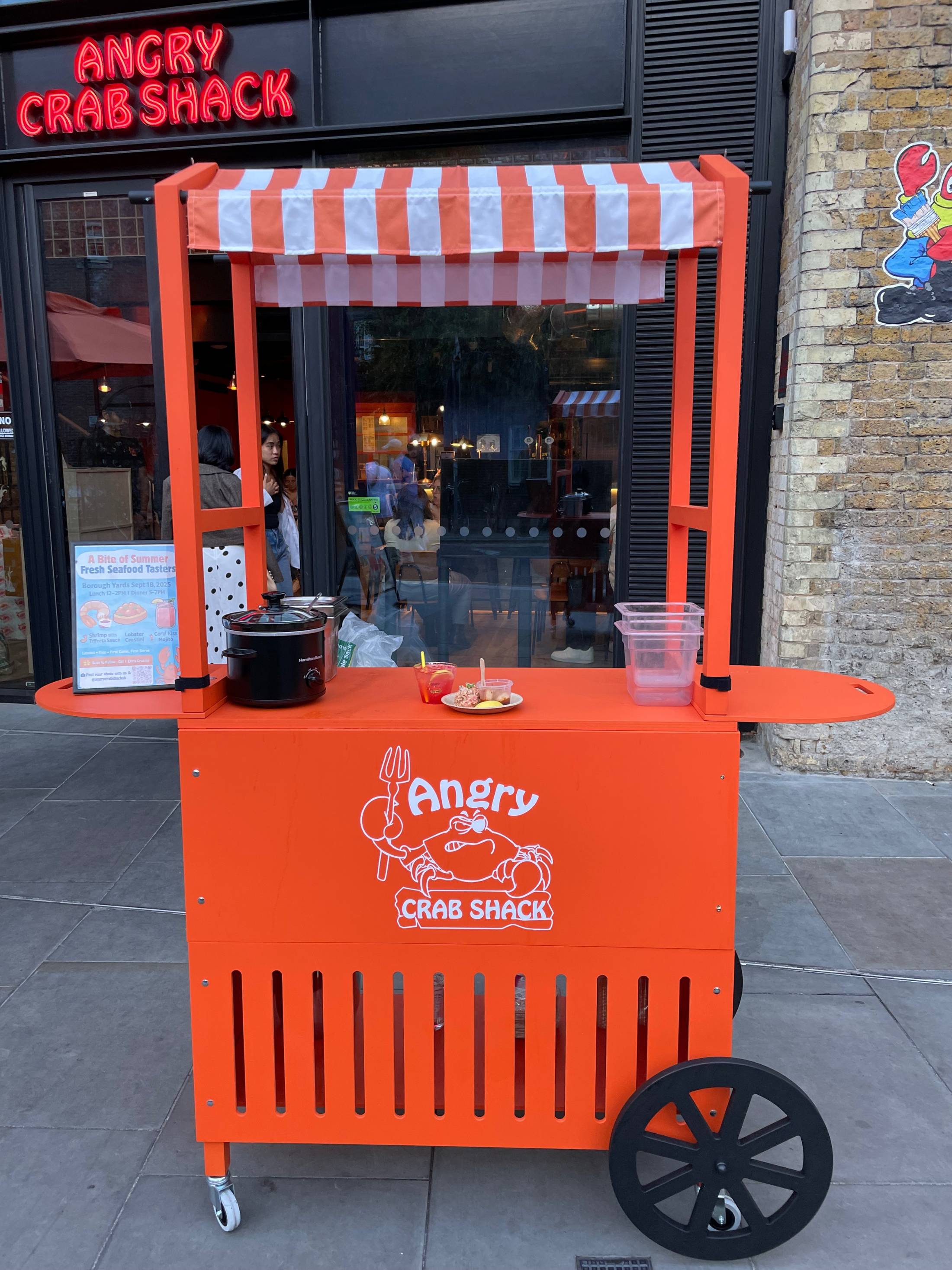 Designed to match the brand’s bold visual identity, the cart combined functional food service with strong branding and became a key element of the overall event experience.