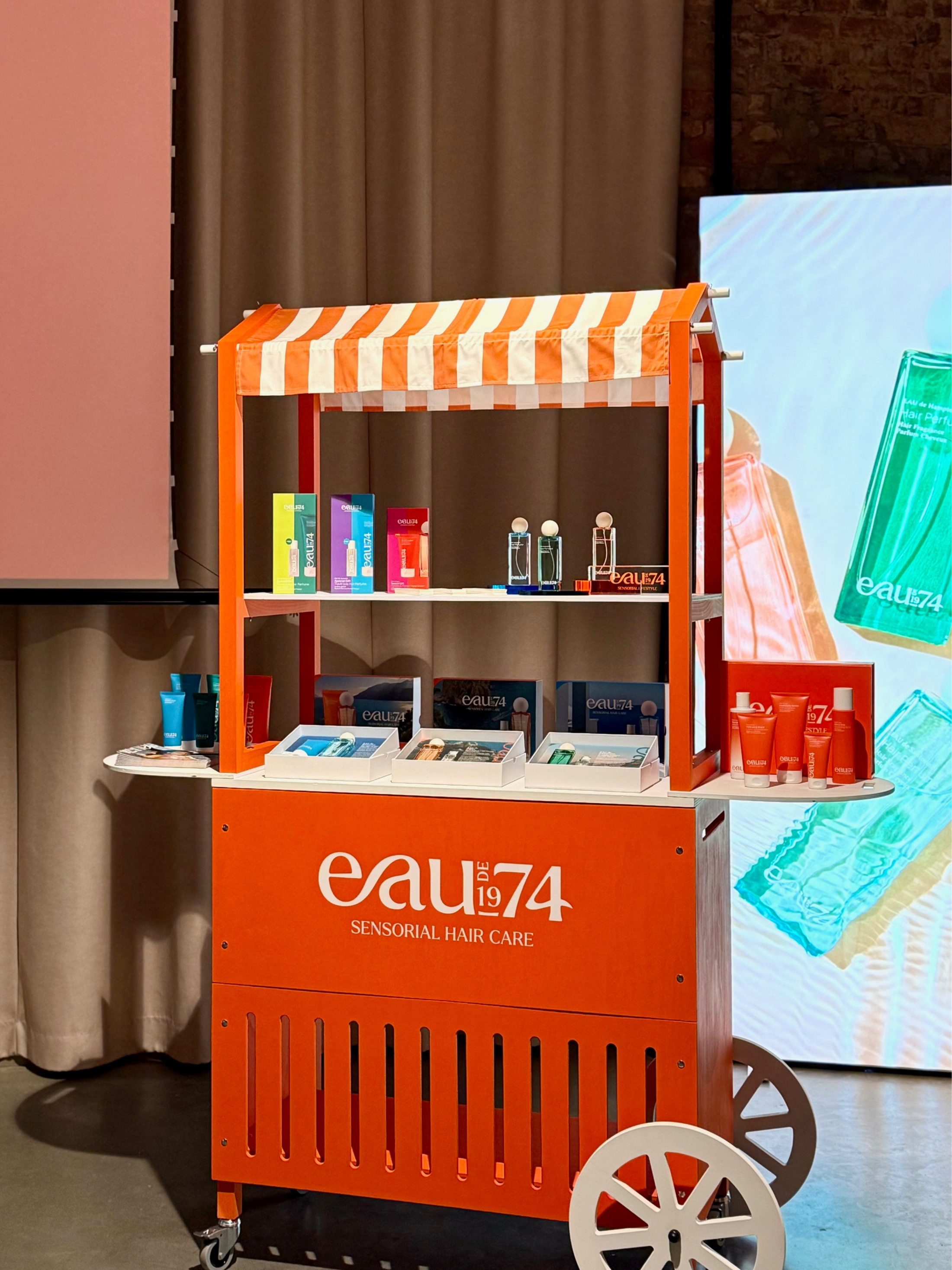 Our custom event cart was part of the official launch of EAUde1974 on the Polish market. The cart was used as a product display and interaction point during an intimate fragrance presentation, supporting the brand’s storytelling and visual identity. The event showcased a premium fragrance collection.