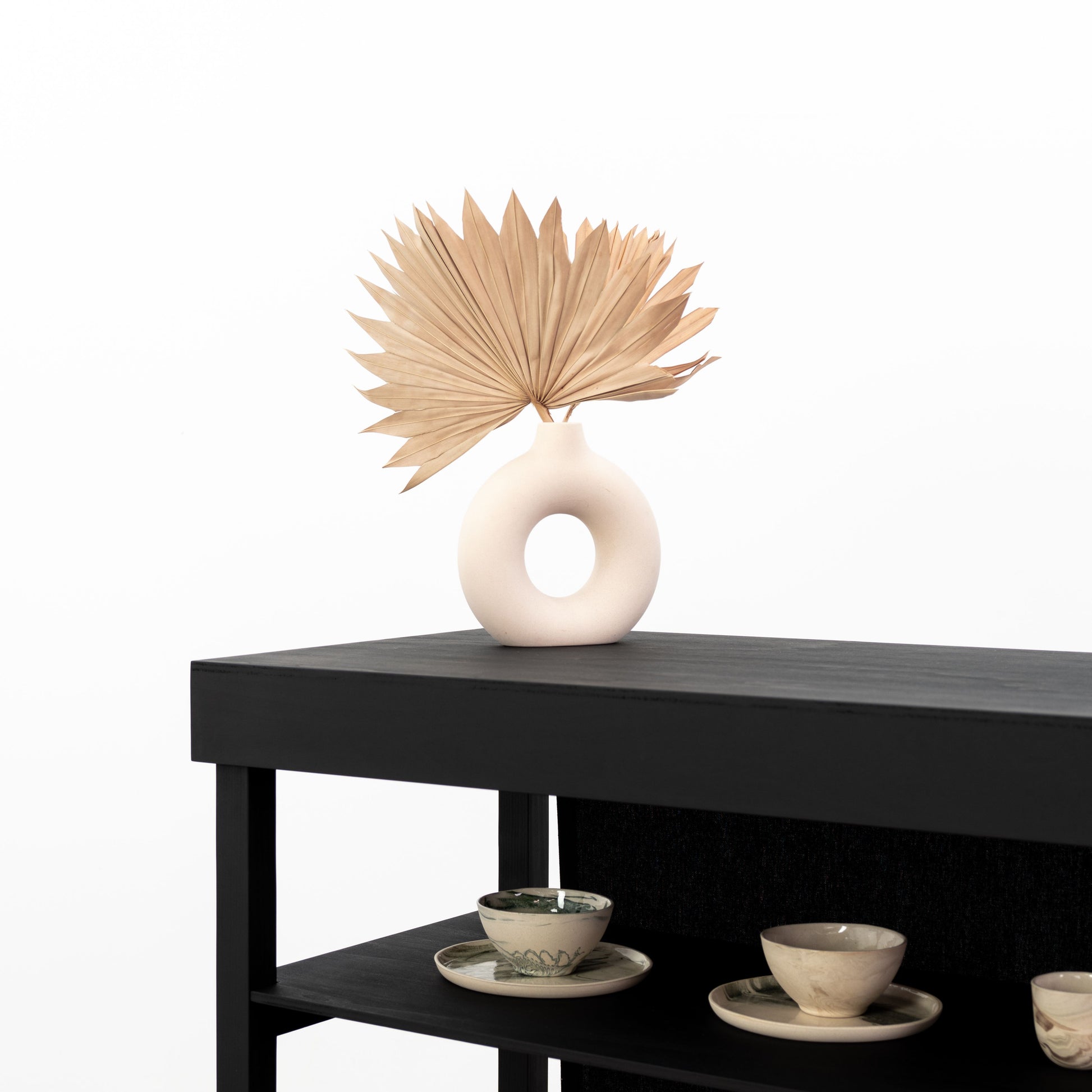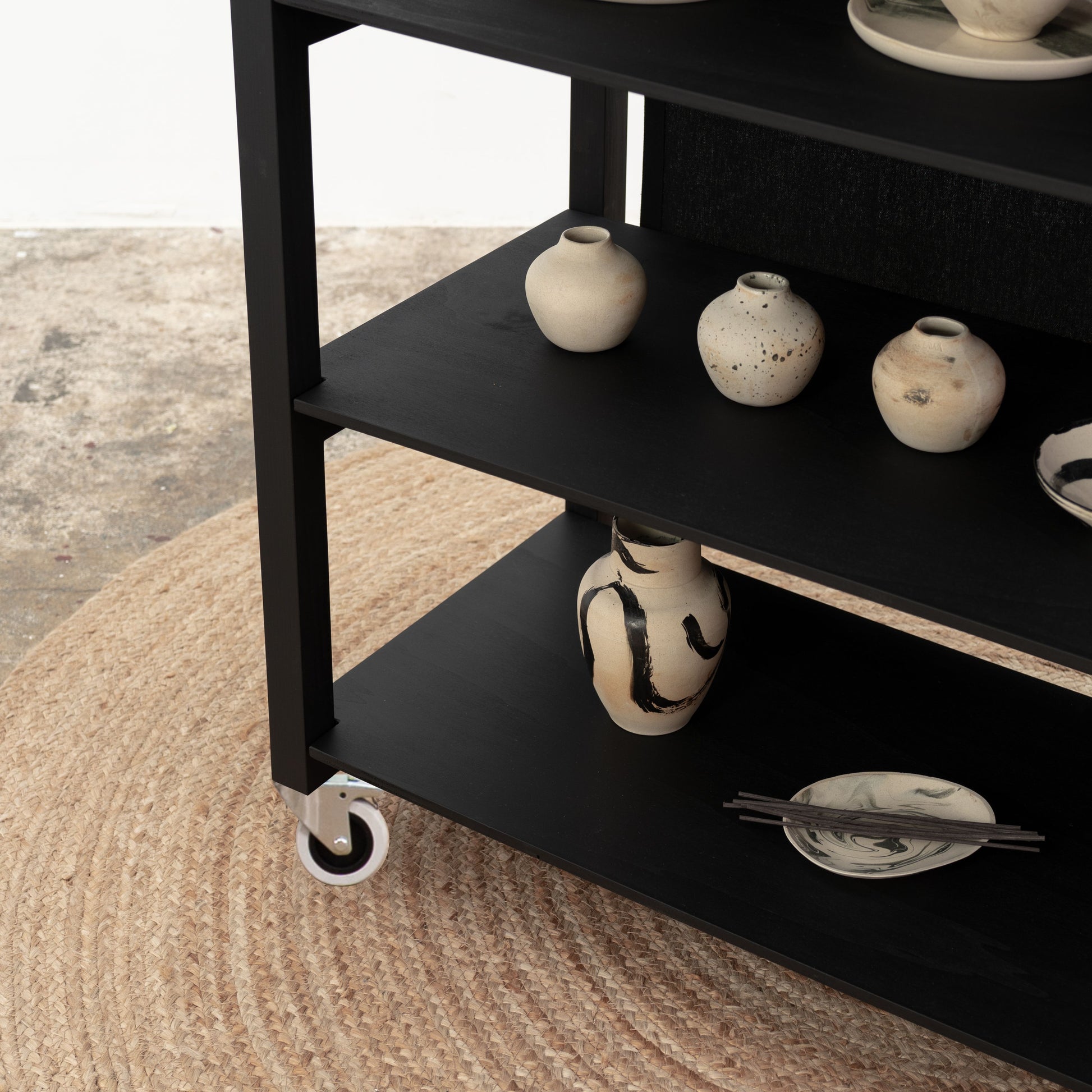Stół wystawienniczy z półkami VC-10-C-W-BL | kolor czarny