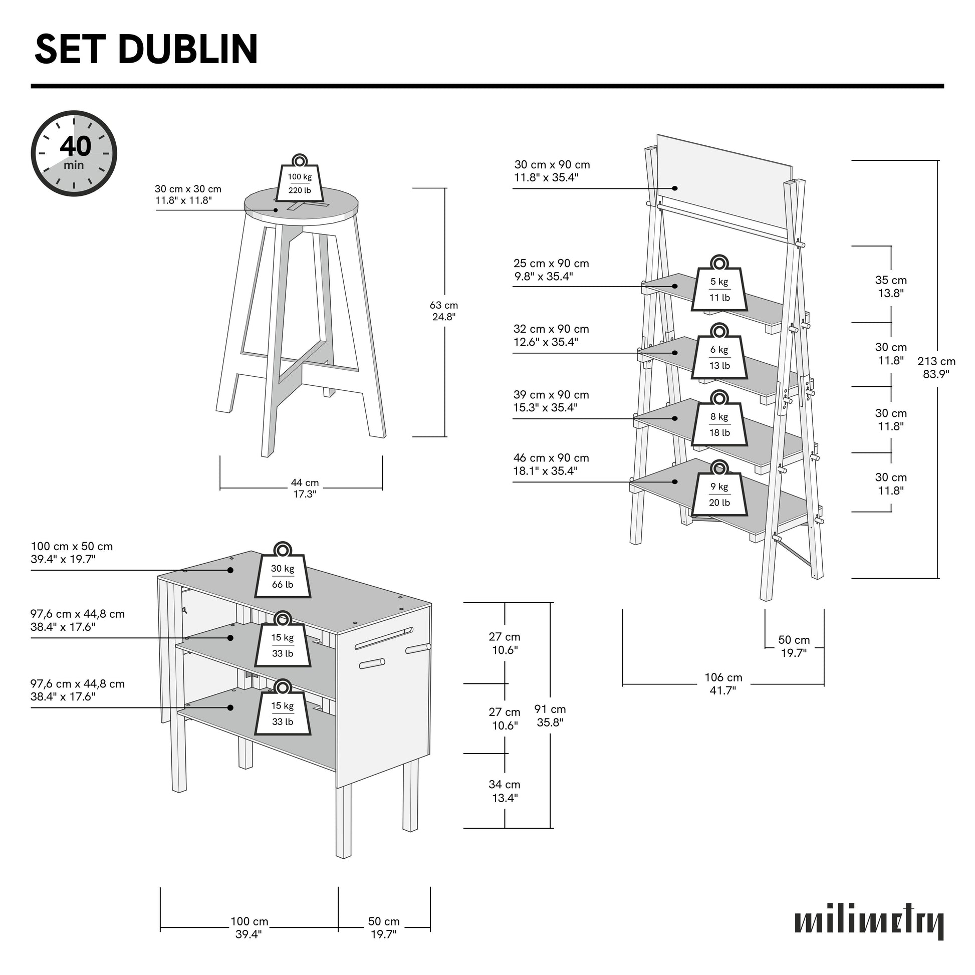 • nośność: blat – 30 kg, półka środkowa – 15 kg, półka dolna – 15 kg