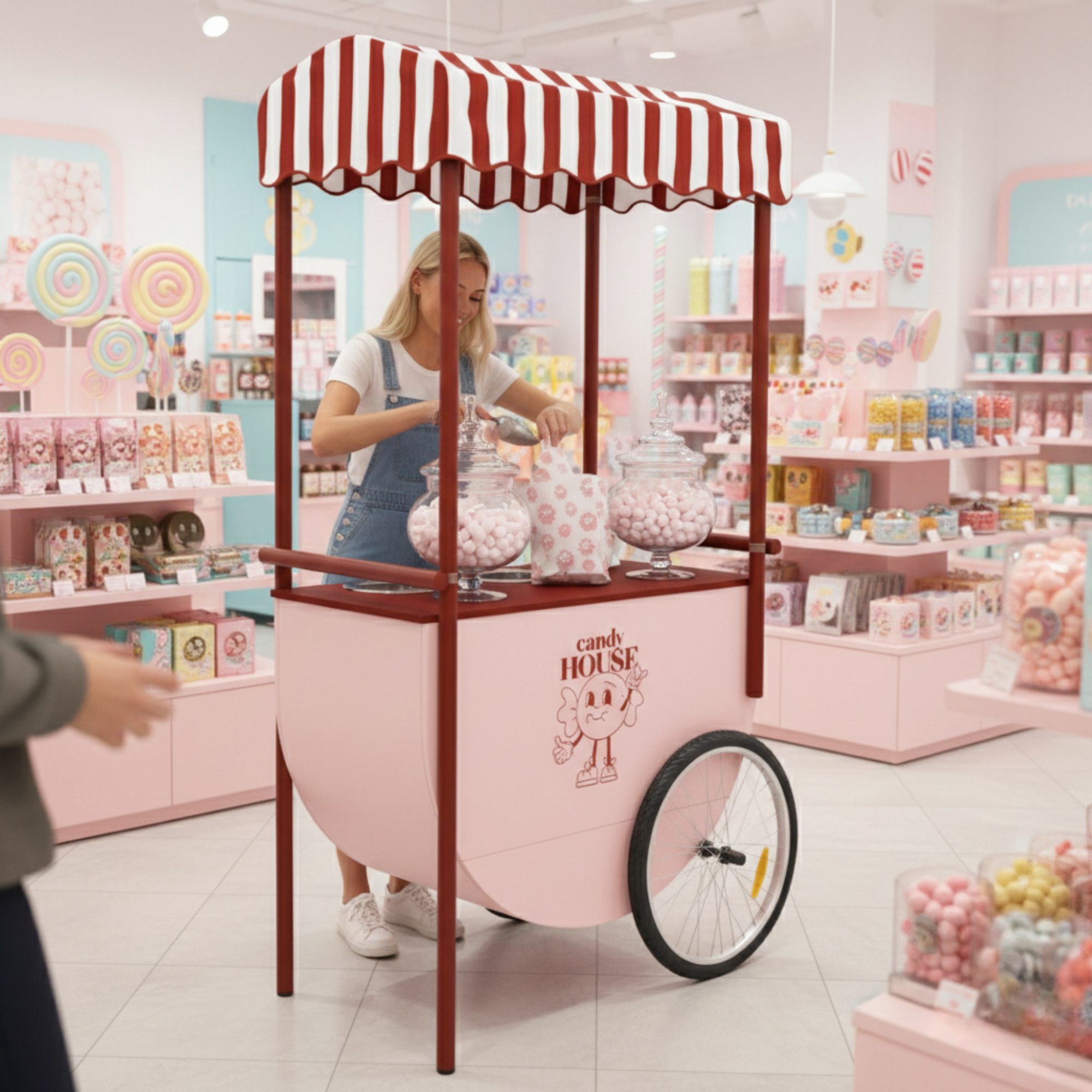 Wózek ze słodyczami ożywia przestrzeń sklepu i sprawia, że tradycyjna ekspozycja produktów staje się czymś bardziej angażującym. Ustawiony jako wyrazisty punkt centralny zachęca do odkrywania smaków, kontaktu z marką i przypomina o prostej przyjemności wybierania ulubionych słodkości. To element, który realnie wpływa na atmosferę miejsca i wzmacnia relację z klientami.