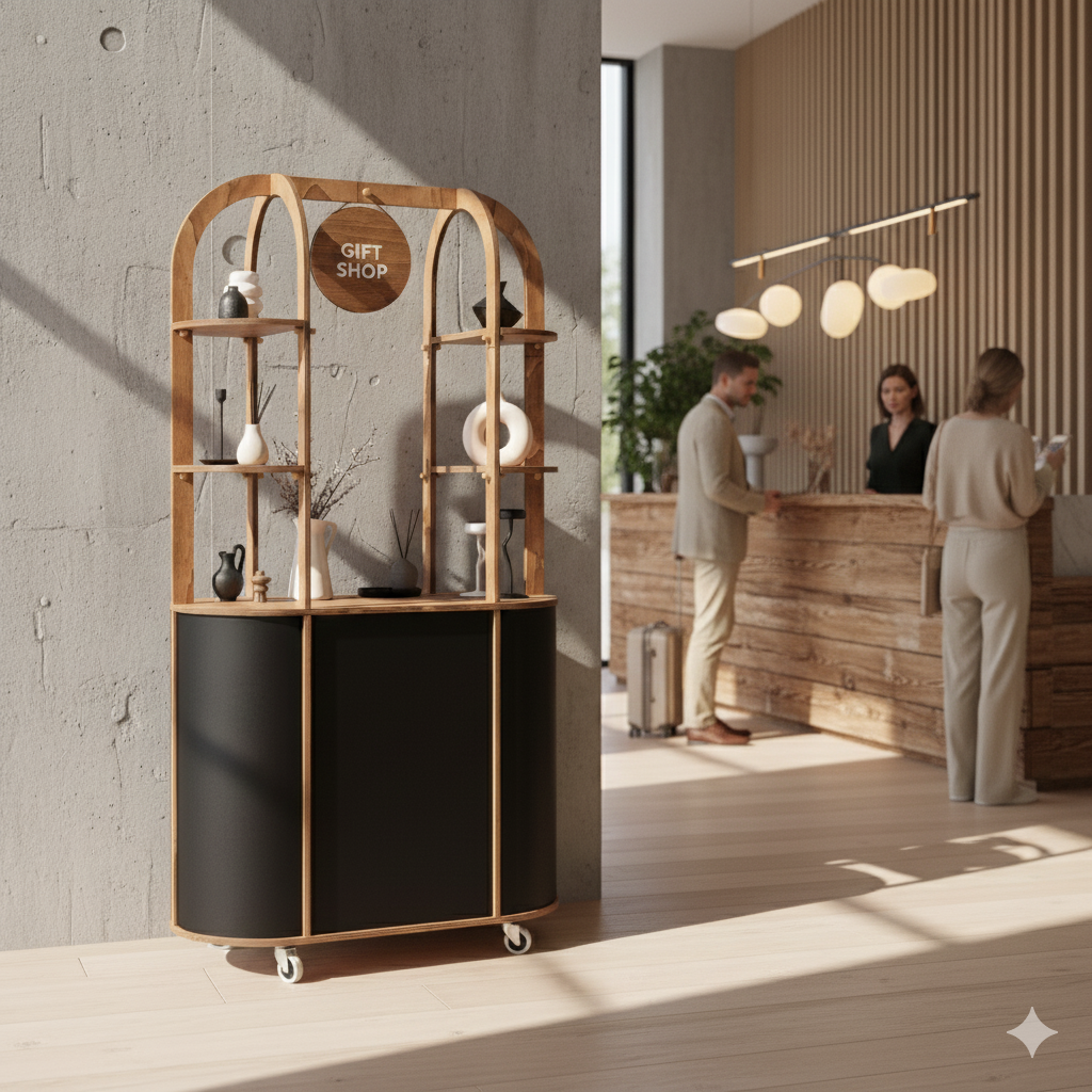 Kompaktowy wózek owalny VC-26-W-ML to mobilne i wielofunkcyjne rozwiązanie stworzone z myślą o eventach, targach, pop-up store’ach, stoiskach sprzedażowych i brand activations. Ten wózek eventowy łączy elegancki design z praktyczną funkcjonalnością, stając się niezbędnym elementem dla agencji eventowych, firm cateringowych, marek retail i organizatorów wydarzeń.