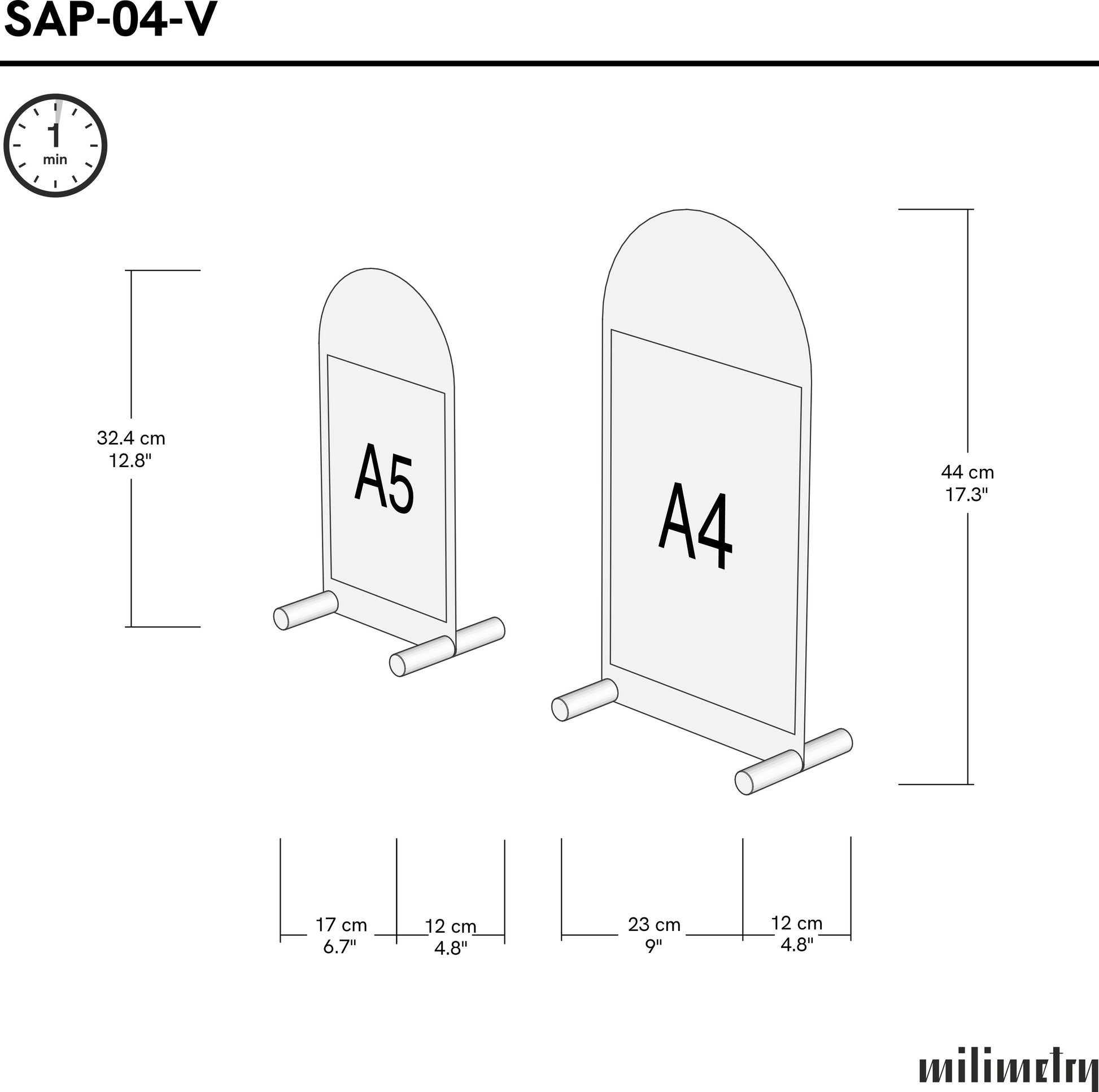 Przeznaczona do ustawienia na płaskich powierzchniach, takich jak lady recepcyjne, stoliki w kawiarniach czy strefy oczekiwania. Model SAP-04-V-WT jest dostępny w rozmiarach A5 i A4, aby dopasować się do Twojej przestrzeni i potrzeb komunikacyjnych. Jego stonowana elegancja sprawia, że naturalnie wpisuje się w nowoczesne wnętrza, w których liczy się zarówno forma, jak i funkcja.