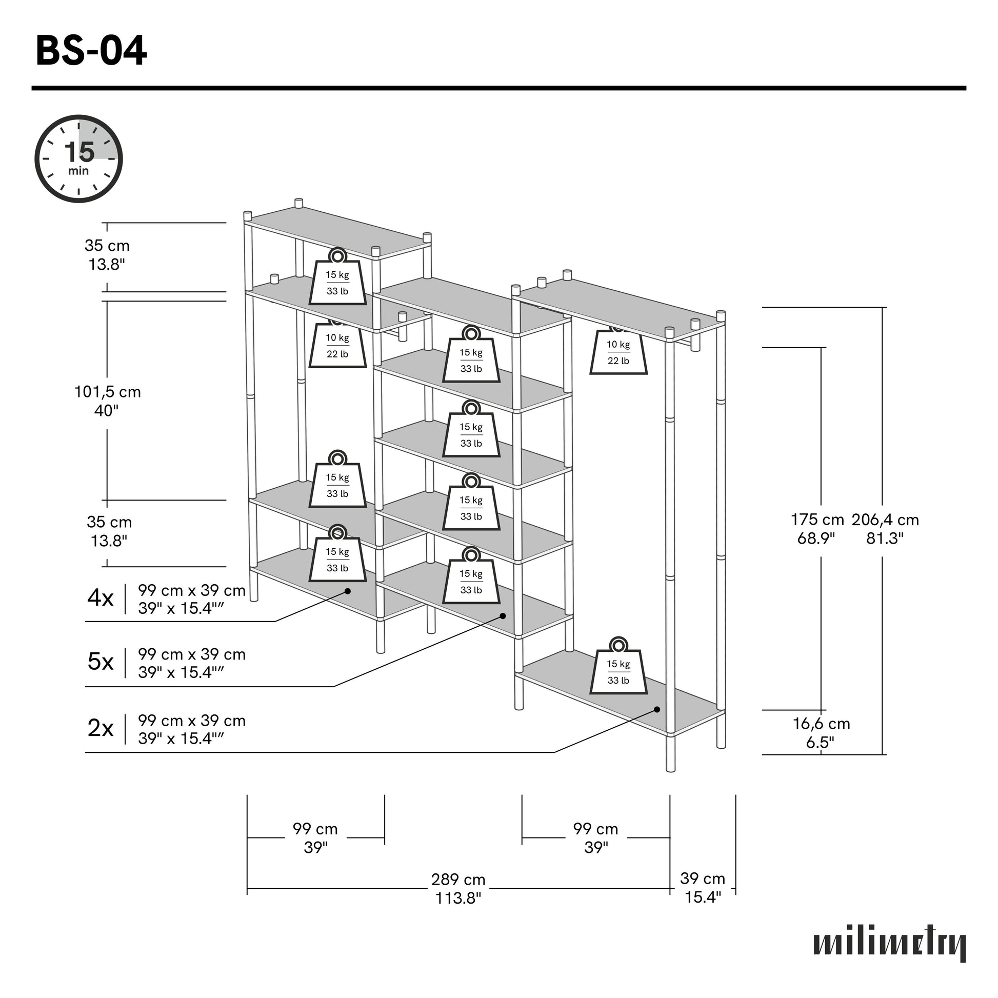 Intuicyjny montaż bez użycia narzędzi na zasadzie skręcanych elementów sprawia, że ustawienie regału jest szybkie i bezproblemowe. Konstrukcja składana na płasko ułatwia transport i przechowywanie pomiędzy wydarzeniami. Regał jest trwały, stabilny i zaprojektowany z myślą o częstym montażu i demontażu, bez utraty jakości czy wytrzymałości. Jest wolnostojący i nie wymaga montażu do ściany, jednak w przypadku instalacji stałej może zostać dodatkowo przymocowany dla bezpieczeństwa.