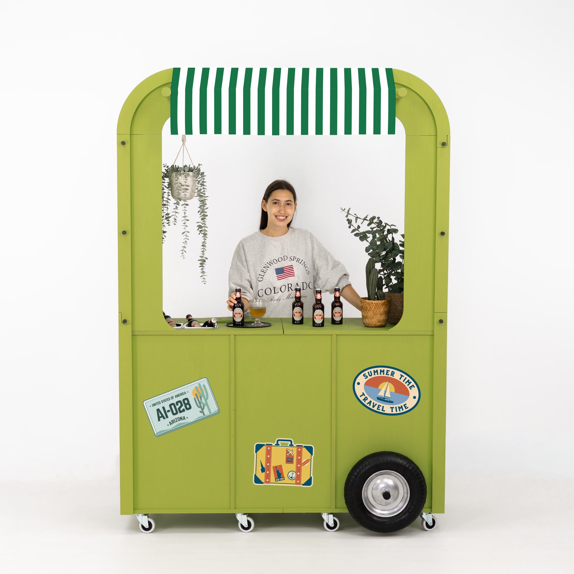 The Camper Style Display Cart is a professional event display cart designed for event agencies, experiential marketing activations, and retail pop-ups. With its camper-inspired design, it adds instant character and visibility to any setting, making it a standout choice for trade shows, corporate events, festivals, and branded experiences. Whether used as a mobile booth, bar cart, tasting station, or promotional counter, it offers the perfect balance of functionality and visual impact.