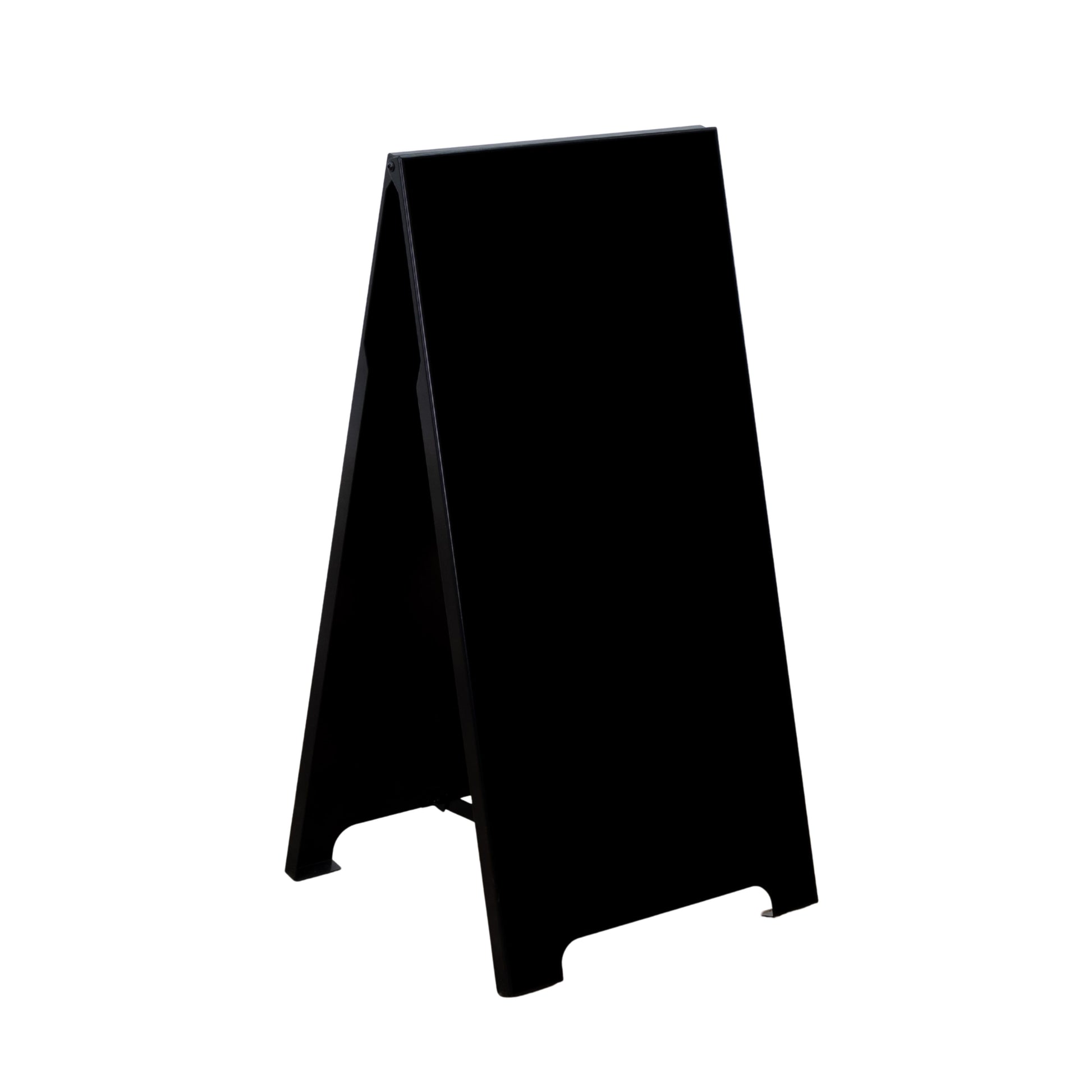 Expertly crafted from durable matte black metal, this freestanding magnetic sandwich board is designed for both indoor and outdoor business signage. Its sturdy A-frame construction ensures stability even on busy sidewalks or outdoor patios. The magnetic surface makes it ideal as a magnetic menu board for bars, food trucks, or events. Easily attach magnetic letters and numbers to create a clean, modern look, or use liquid chalk markers for handwritten, personalized messages. This black sandwich board sign combines the practicality of a magnetic sidewalk sign with the charm of traditional café signage.