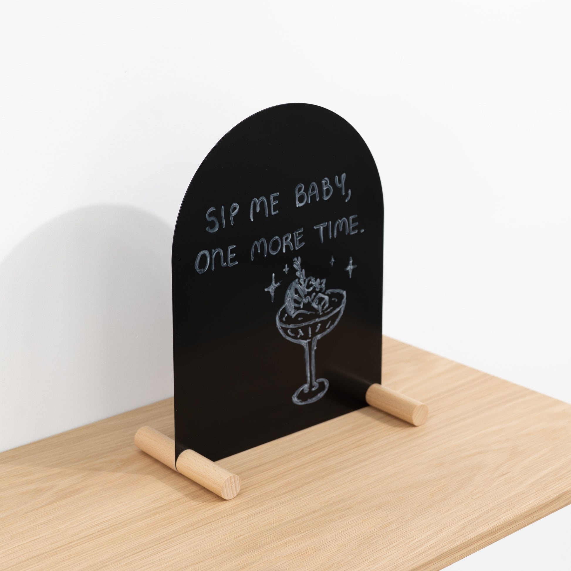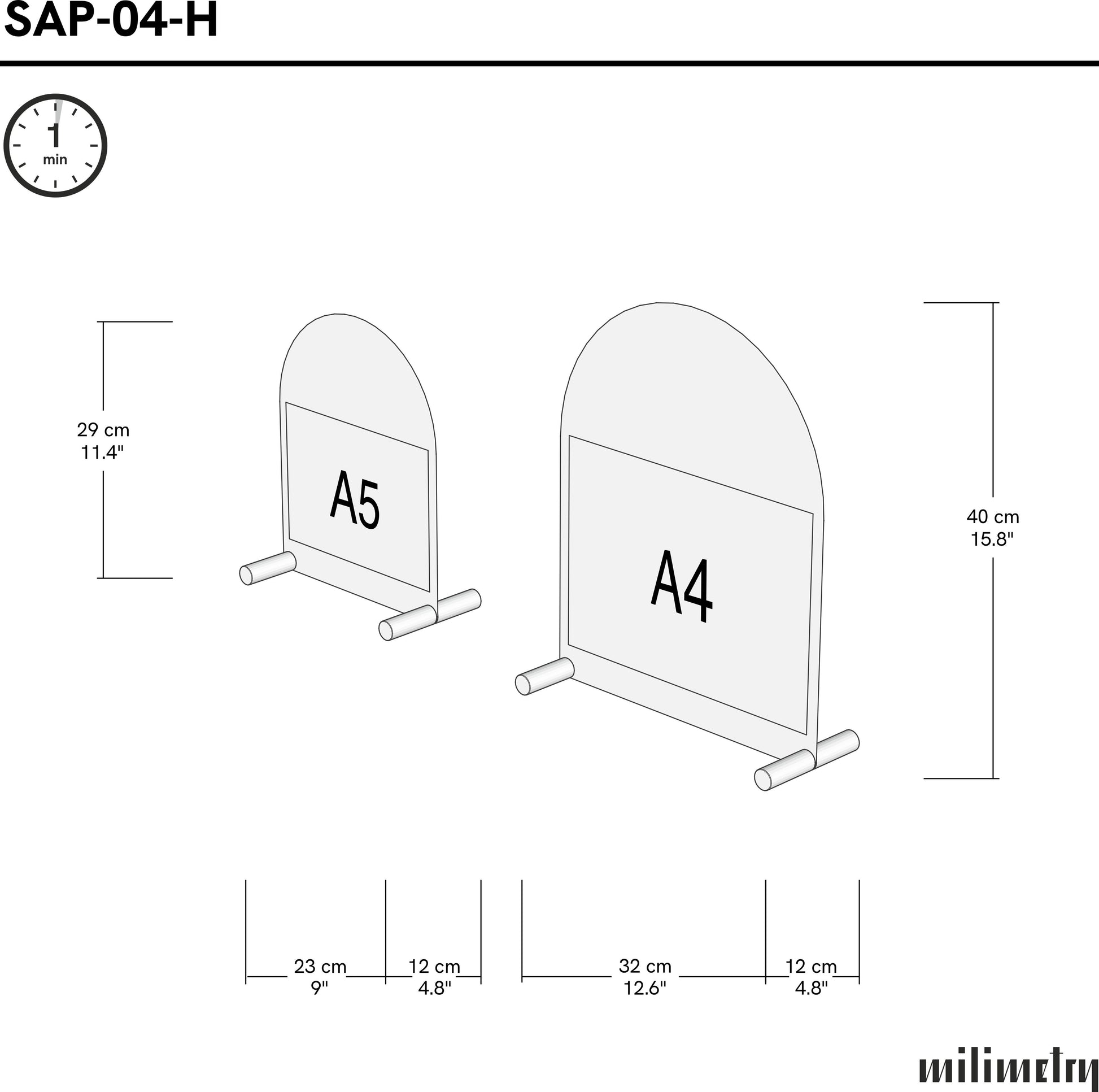 Upgrade your signage setup with these modern and minimalist magnetic tabletop sign boards, perfect for restaurants, cafés, retail stores, trade show booths, or hotel lobbies. The SAP-04-H-BL model features a sleek black arched board and natural wood base, designed to add elegance and clarity to your product or service messaging. Available in two convenient sizes – A4 and A5 – these countertop signage boards are ideal for showcasing menus, price lists, event details, or branded messages.