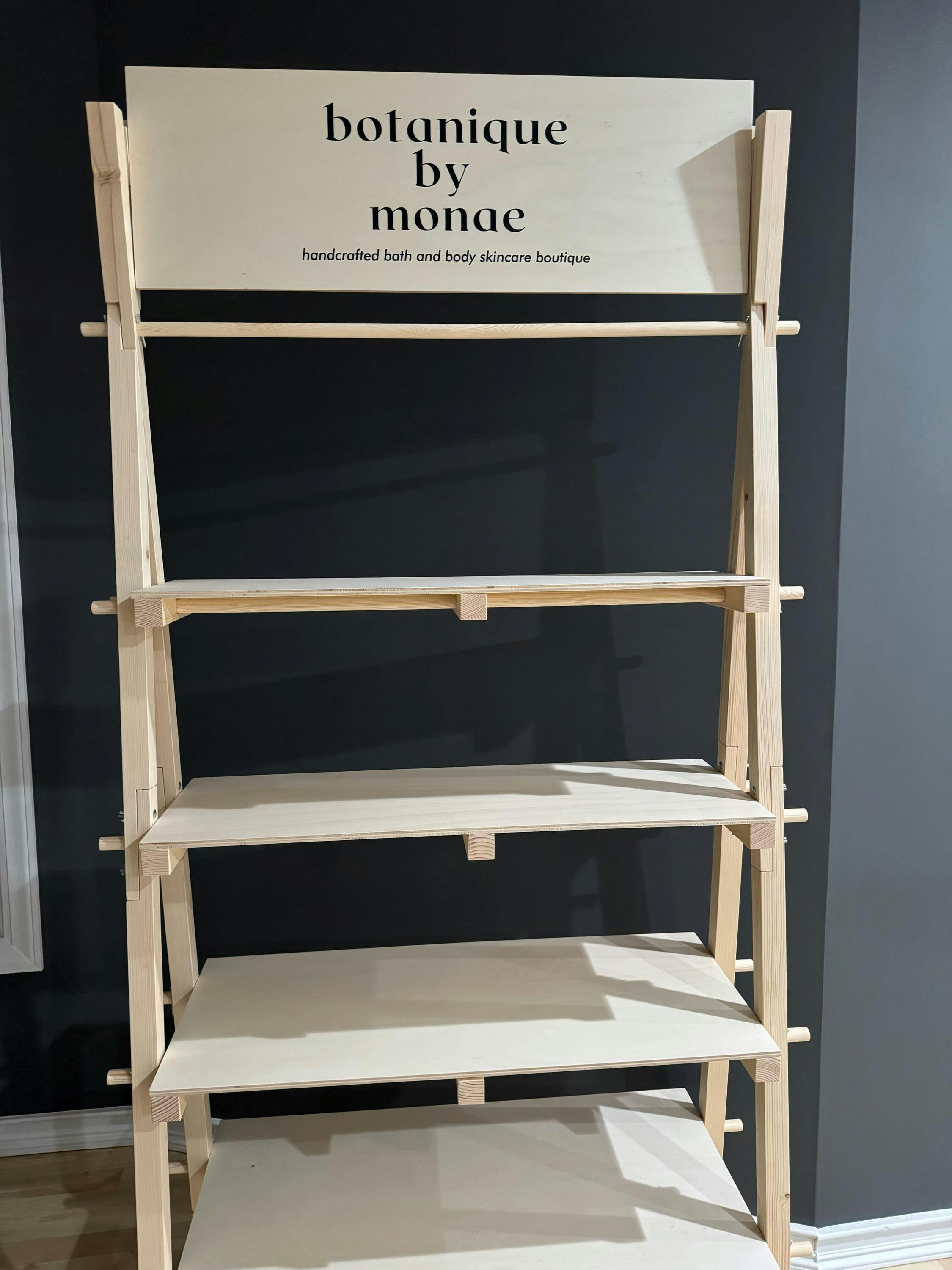 This shelving unit requires no tools and can be set up within minutes. It works perfectly for gourmet food products, coffee brands, organic skincare, handcrafted goods, and boutique retail setups.